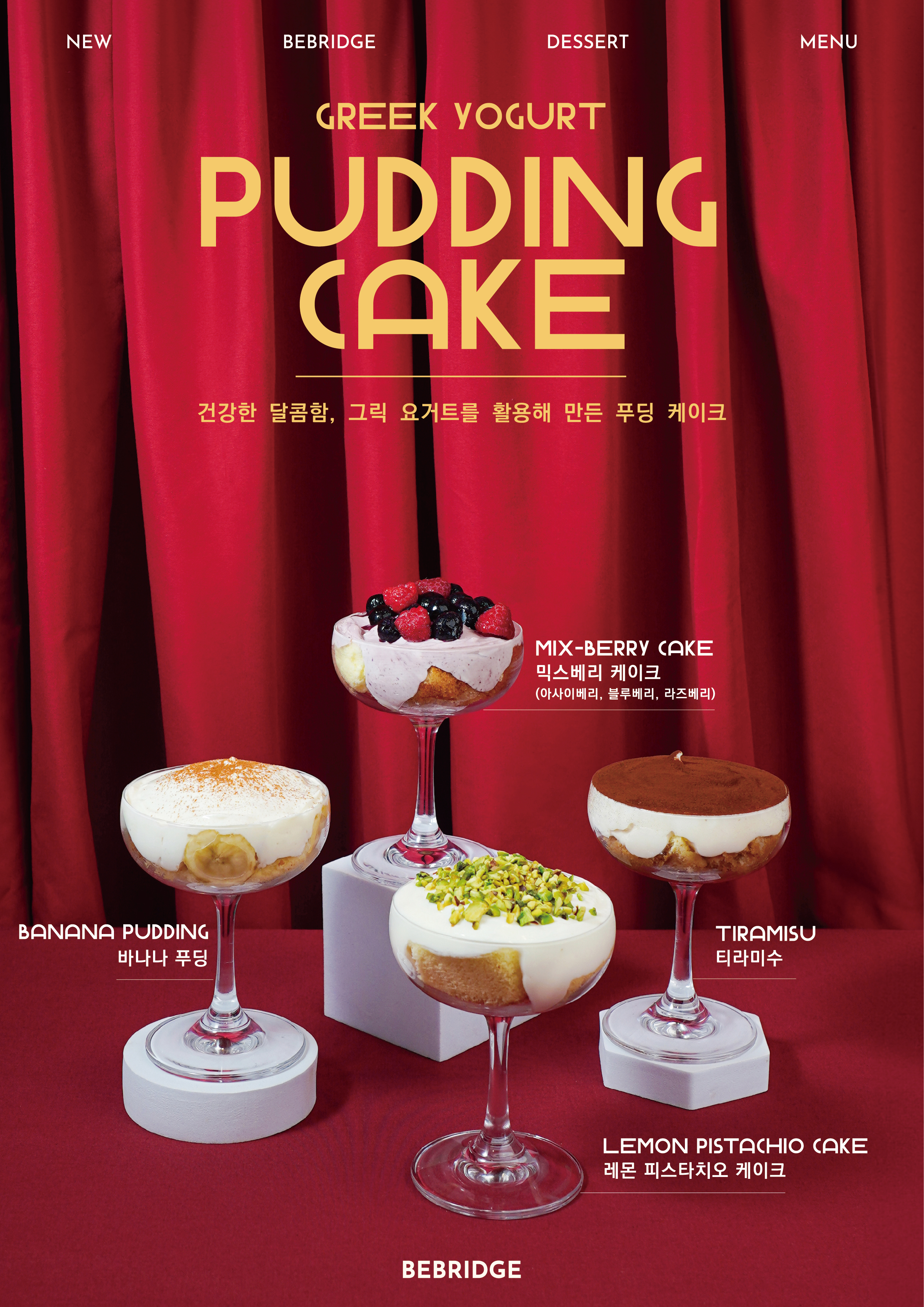 베브릿지가 지중해와 그리스의 그릭요거트를 활용하여 기획한 디저트 메뉴입니다.